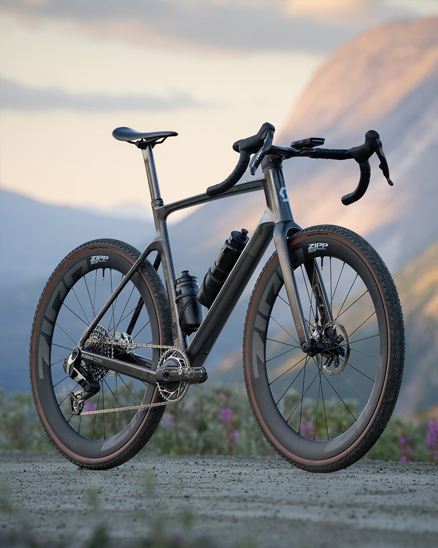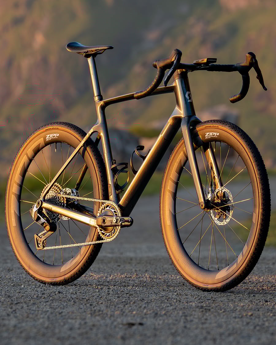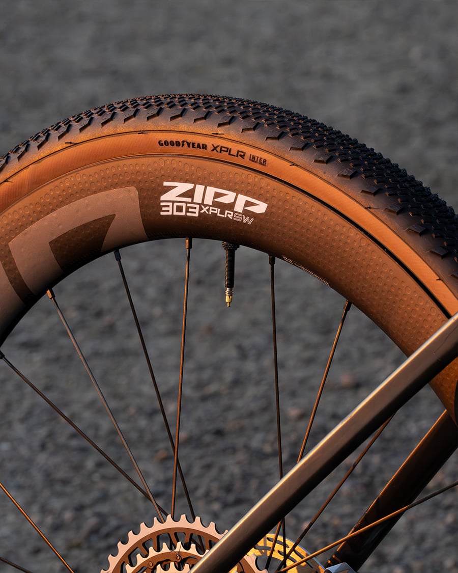 Dezent aber bei genauer Betrachtung trotzdem voluminös sind auch die neuen Zipp 303 XPLR SW Laufräder, die bzgl. Geschwindigkeit und Komfort neue Maßstäbe setzen. Mit einer Felgeninnenweite von 32mm stellen sie dem Fahrer völlig andere Fahreigenschaften zur Verfügung, als es die bisher üblichen Laufräder bieten.