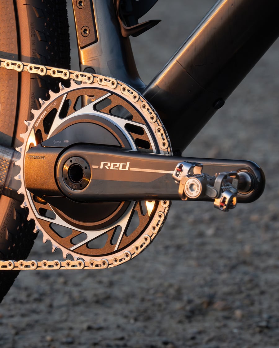 Nachdem die SRAM RED in ihrer Rennradausführung von Dangerholm eine passende Präsentationsfläche erhalten hat, ist es nun an der SRAM RED XPLR, einen schicken Unterbau zu bekommen. Dangerholm hat dafür einen Carbonrahmen poliert und ihm eine halbmatte, metallisch anmutende Optik verpasst.