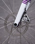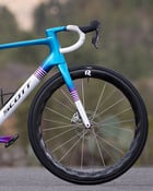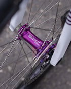Die Laufräder nehmen die Farben des Antriebs wieder auf und setzen mit violetten Speichennippeln und den Extralite Naben in einer exklusiven R2BIKE Edition ebenfalls knallige Akzente. Die ungewöhnlichen Felgen stammen von Light Bicycle und haben eine Felgenhöhe von 50mm. Die Felgeninnenweite beträgt 25mm und ist damit optimal für die Verwendung als Allrounder.