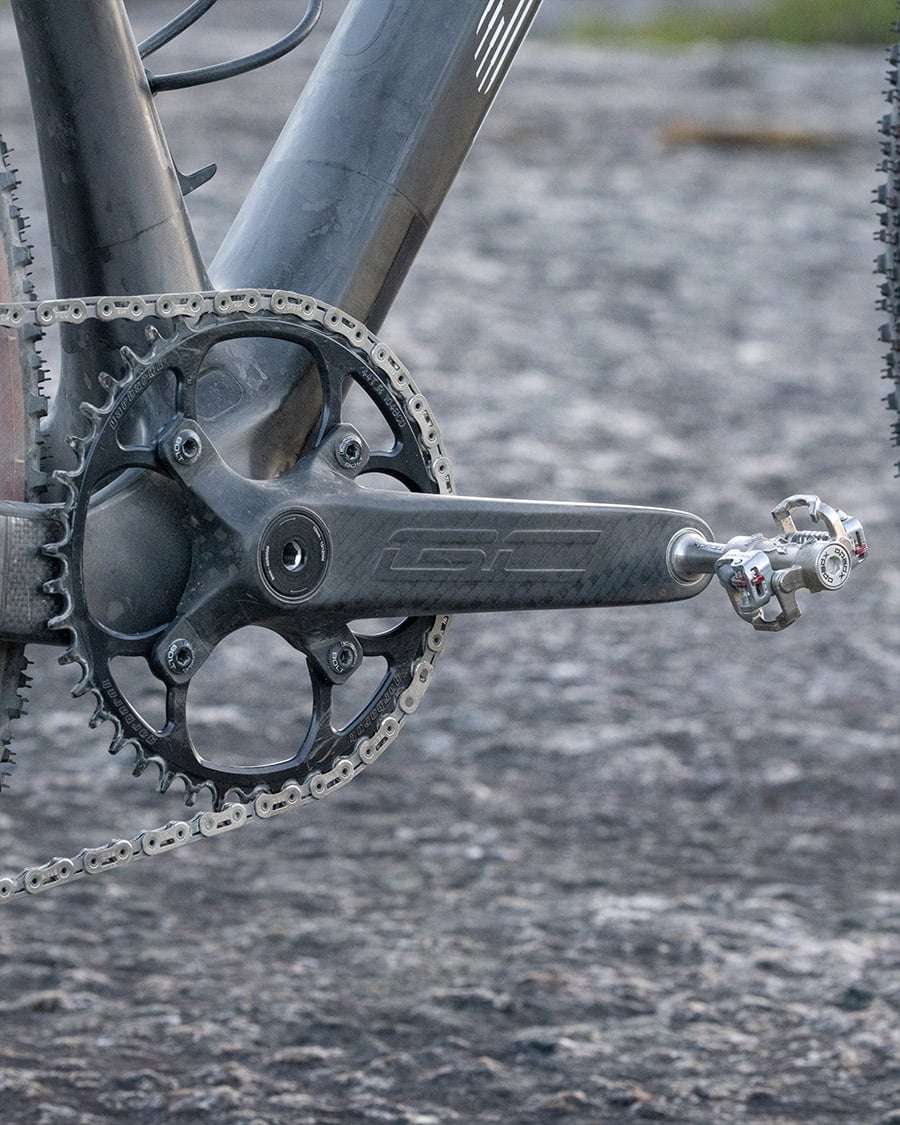 Die erste der beiden Alternativaufbauten verschreibt sich dangerholm-typisch wieder ganz dem Gewicht. Trotz RockShox SID und breiten Reifen sollte das Rad in gravel-üblichem Rahmen bleiben: mit Pedale kommt der Aufbau auf 7,19 kg. Gerade im bereich der Laufräder ist es nicht ganz so aerodynamisch wie ein reines Gravelrad, es glänzt aber auf bestimmtem Gelände, wo man besser hohen Geschwindigkeiten halten kann.