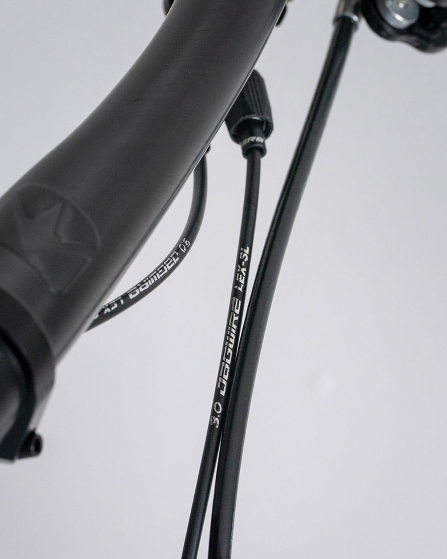 Für die Verlegung der Fernbedienungskabel der Federung nutzt Dangerholm Jagwire LEX-SL 3.0. Das einzigartige dünne Gehäuse mit einem Durchmesser von 3 mm, im Gegensatz zu normalen 4 mm Hüllen, ist extrem flexibel und bietet dennoch die volle Stabilität.